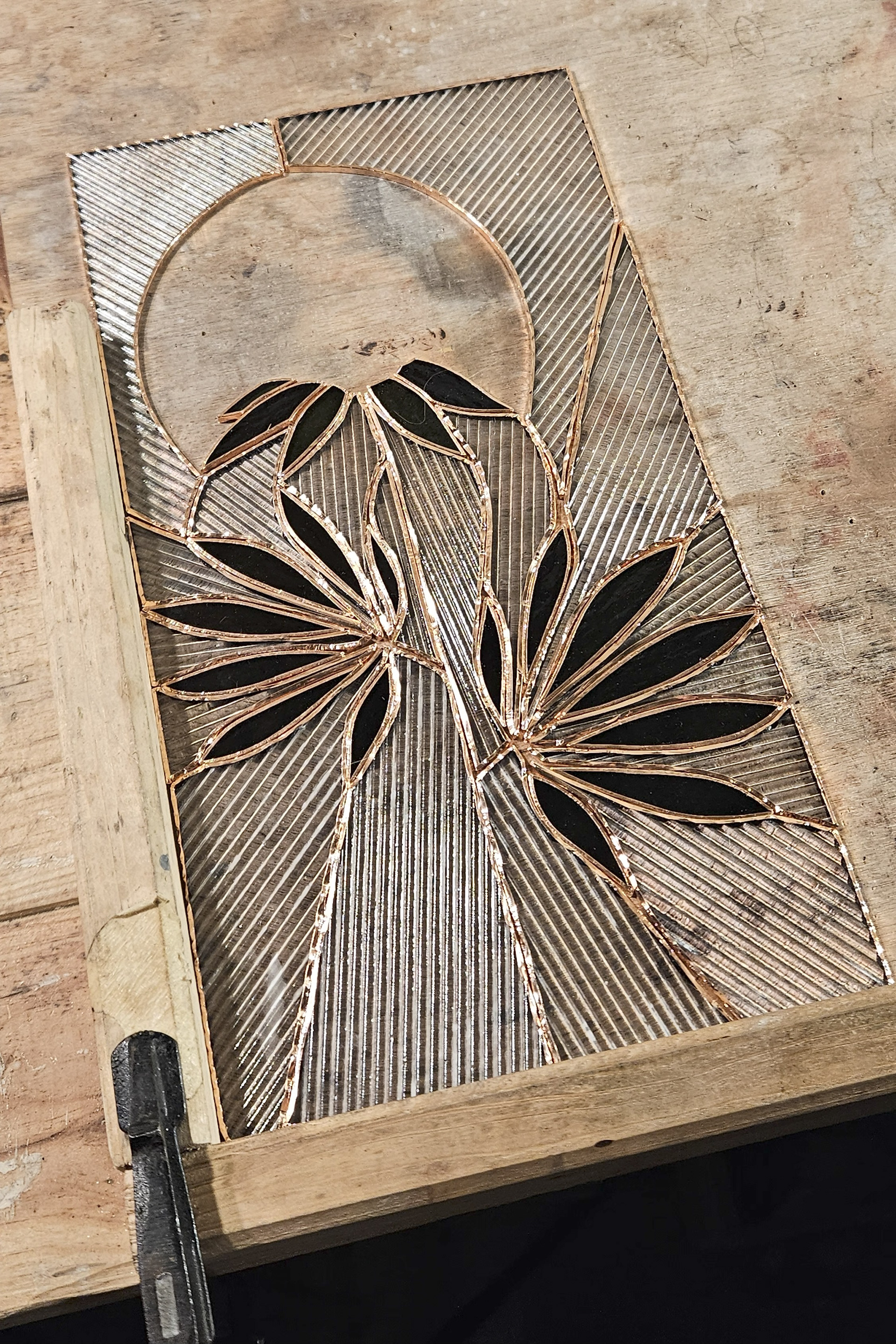 La personne souhaitait transposer sa plante préférée en vitrail.